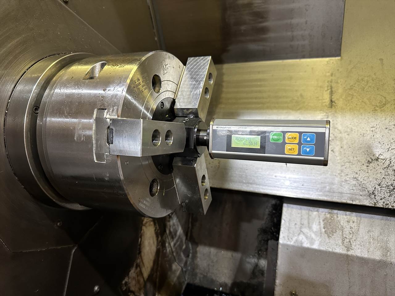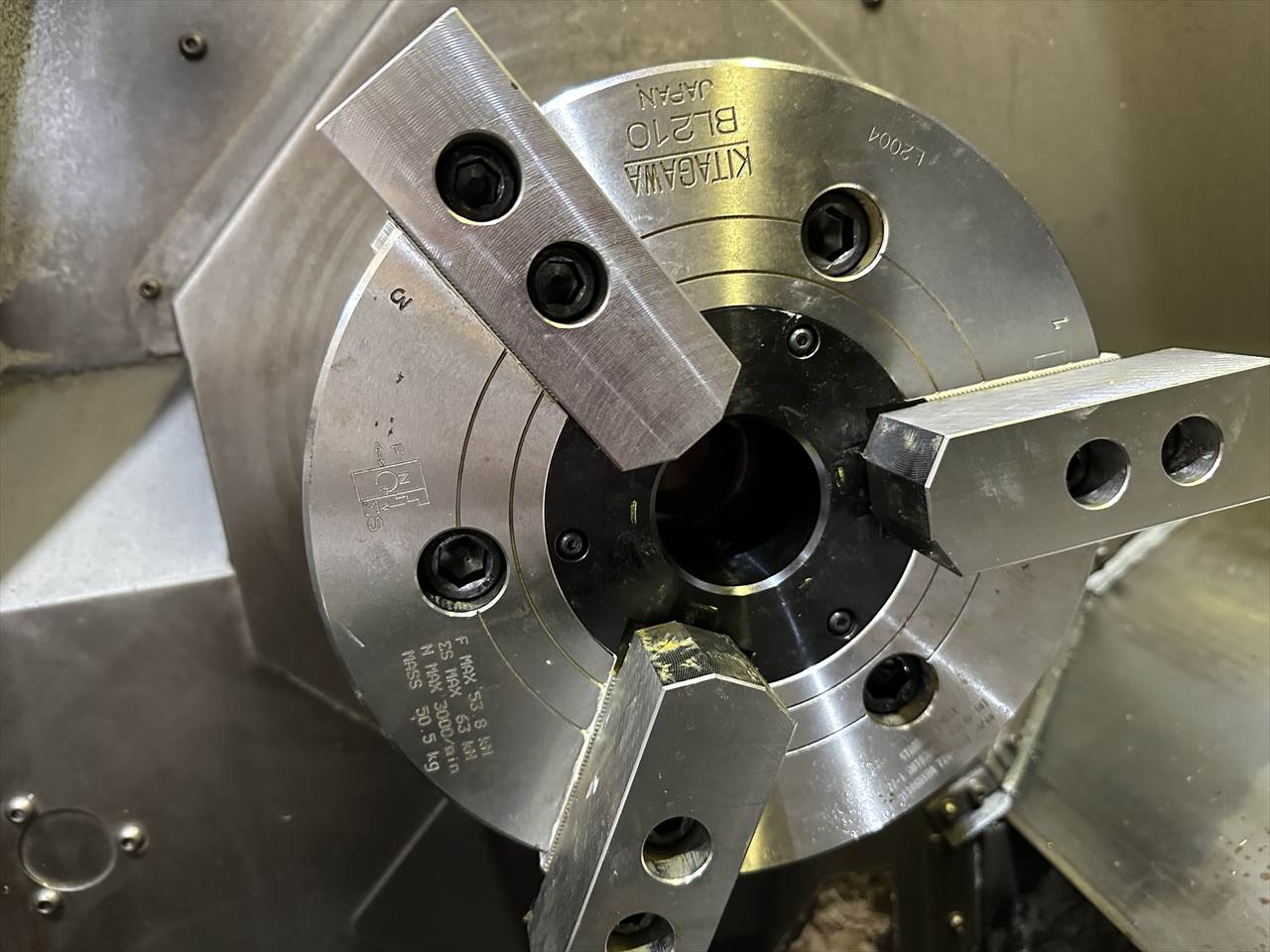 主軸回転速度:標準10インチで4000rpm(12インチエアーチャックの時は2000rpmでした。) 主軸貫通穴:φ88mm 出力(ビルトインモ