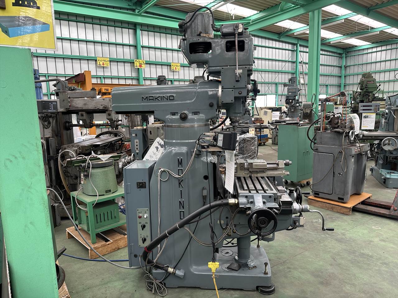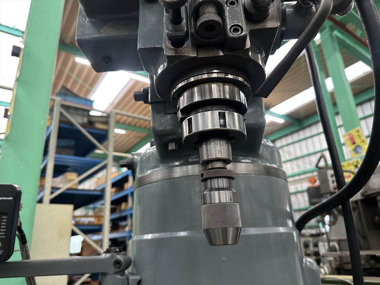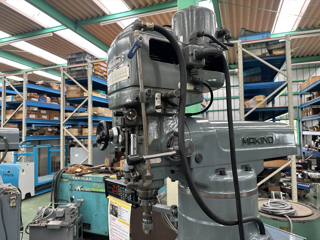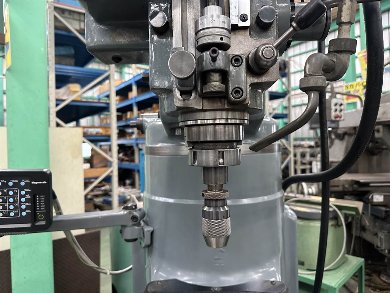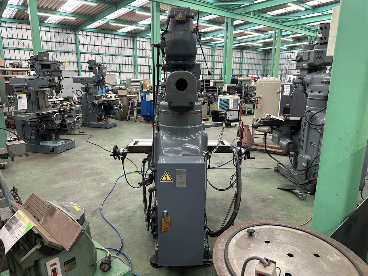 主軸穴のテーパ:№40 主軸回転数:75~4000rpm(ベルト掛け替え12段) 主軸頭旋回角度:左右±45°