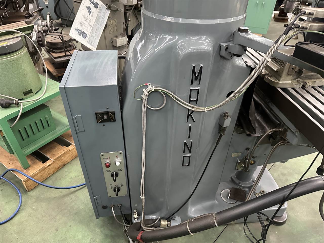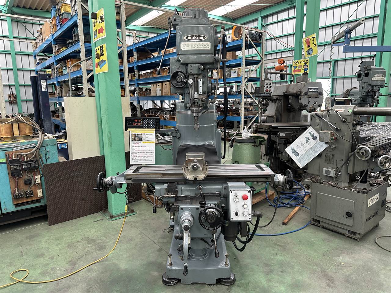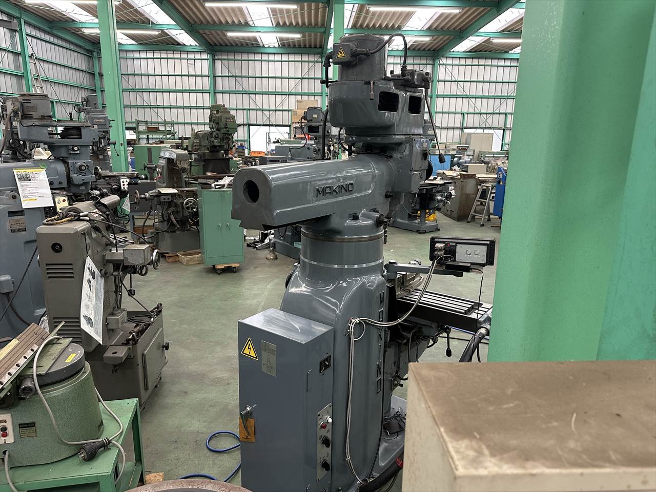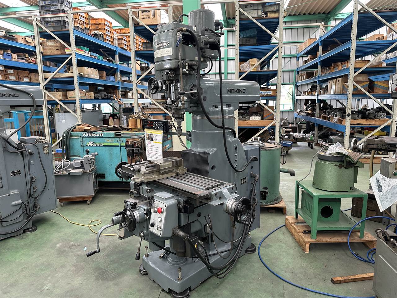 主軸穴のテーパ:№40 主軸回転数:75~4000rpm(ベルト掛け替え12段) 主軸頭旋回角度:左右±45°