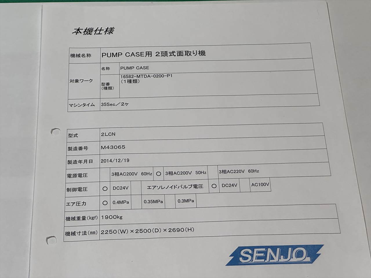 PUMP CASE用 2頭式面取り機
