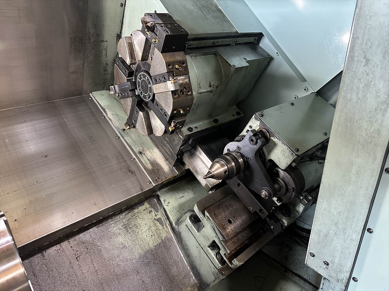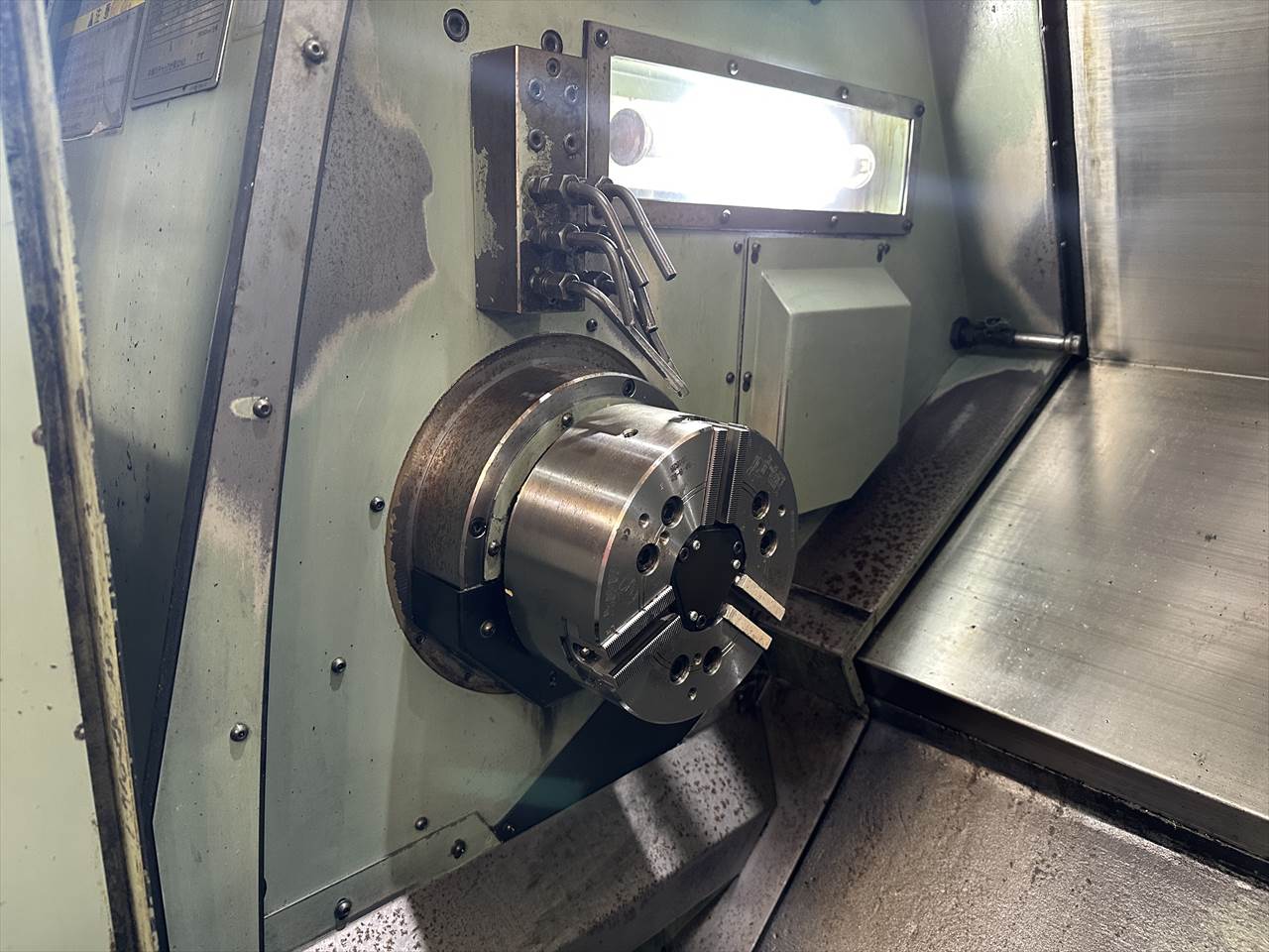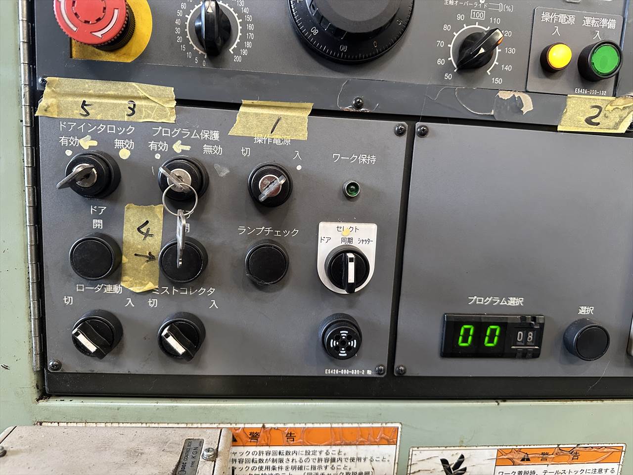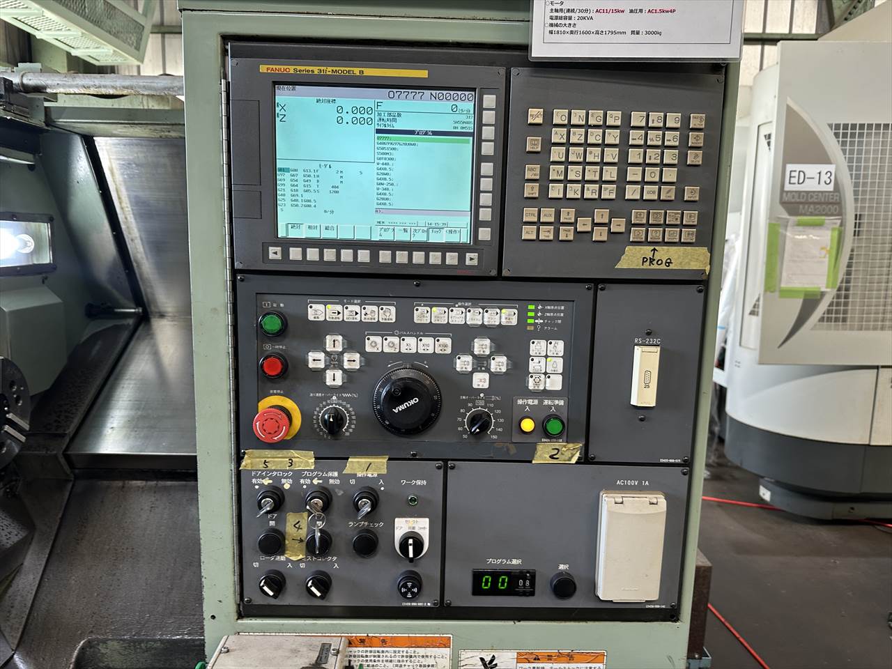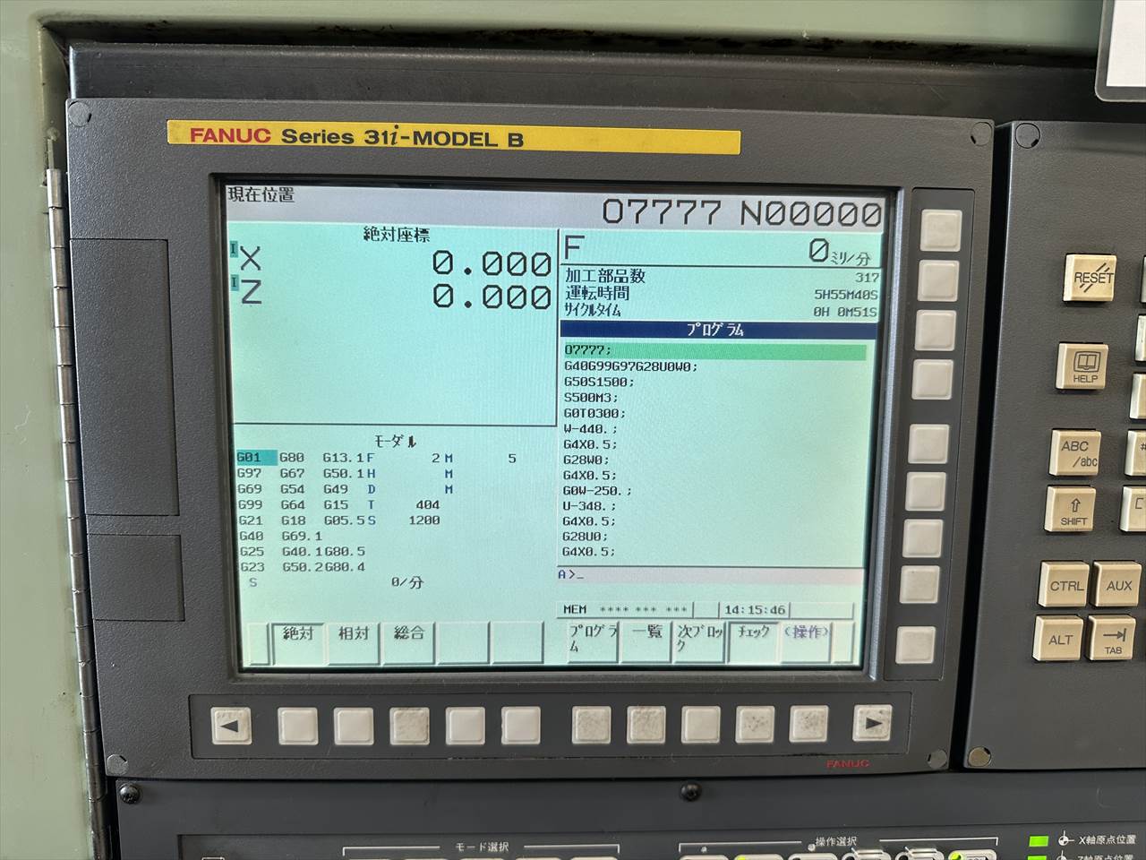 ○NC装置  FANUC 31i-B ○特徴  センター付 新品8インチチャック(中実) 後出しチップコンベア オートドア ○容量  最大振り:φ500 標準加工径:φ260 最大加工径:φ350mm  最大加工長:460 両センター間距離:480mm ○主軸台  主軸端形状:A2-6 主軸前部の軸径:φ100  8インチチャック(松本製 新品 中実) ○主軸駆動  主軸回転速度:45~4500rpm 主軸速度オーバーライド:50~150% ○刃物台  刃物台形式:V8 標準使用バイト:□25mm  ボーリングバー直径:φ32 φ40mm ○送り軸  移動距離:X軸200 Z軸460mm  早送り速度:X軸24 Z軸30m/min  切削送りオーバーライド:0~200% ○芯押台  芯押軸径:φ100mm センター穴:MT5  芯押軸移動距離:120mm ○モータ  主軸用(連続/30分):AC11/15kw 油圧用:AC1.5kw4P  電源総容量:20KVA ○機械の大きさ  幅1810×奥行1600×高さ1795mm 質量:3000㎏
