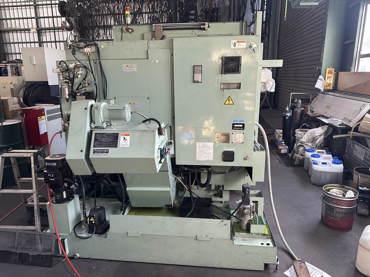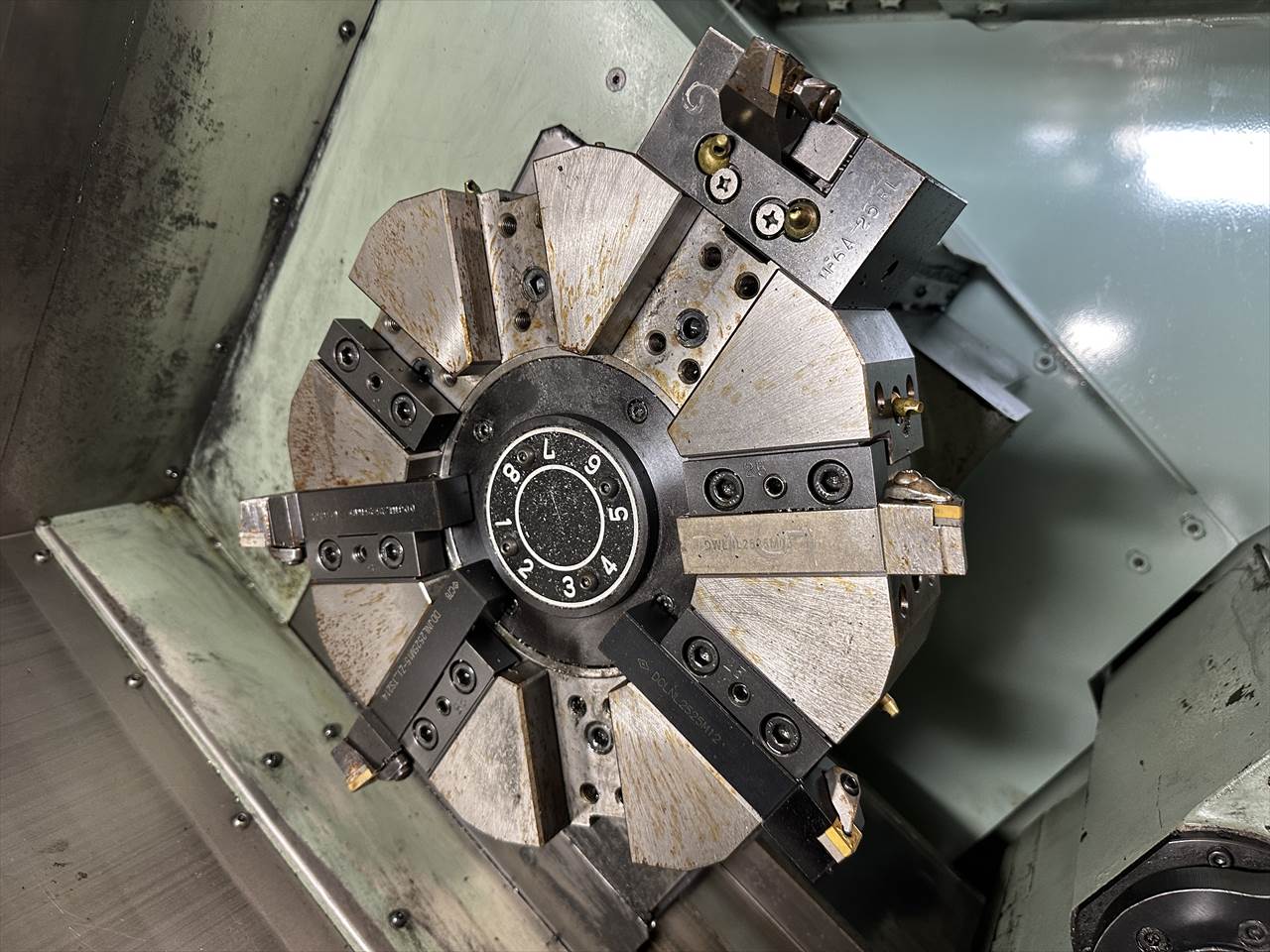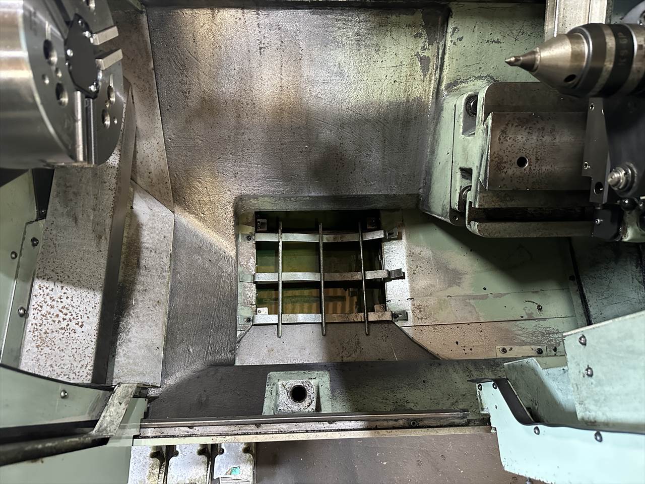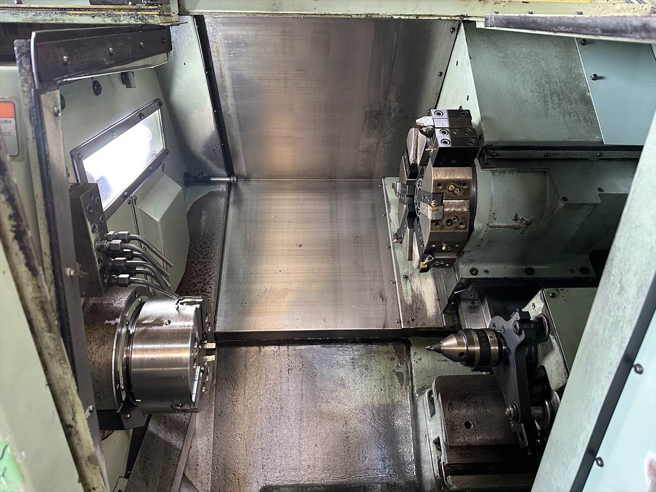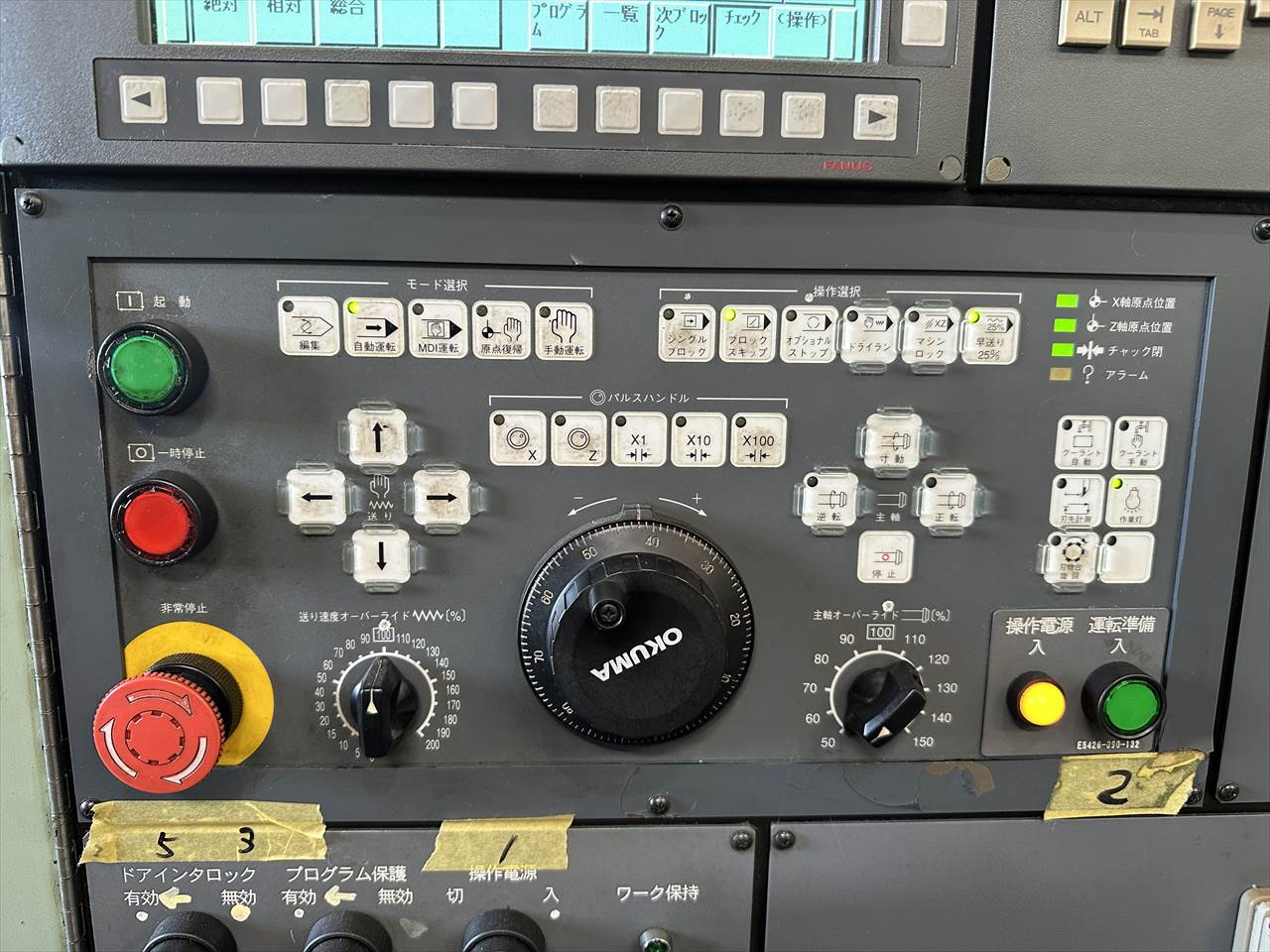○NC装置  FANUC 31i-B ○特徴  センター付 新品8インチチャック(中実) 後出しチップコンベア オートドア ○容量  最大振り:φ500 標準加工径:φ260 最大加工径:φ350mm  最大加工長:460 両センター間距離:480mm ○主軸台  主軸端形状:A2-6 主軸前部の軸径:φ100  8インチチャック(松本製 新品 中実) ○主軸駆動  主軸回転速度:45~4500rpm 主軸速度オーバーライド:50~150% ○刃物台  刃物台形式:V8 標準使用バイト:□25mm  ボーリングバー直径:φ32 φ40mm ○送り軸  移動距離:X軸200 Z軸460mm  早送り速度:X軸24 Z軸30m/min  切削送りオーバーライド:0~200% ○芯押台  芯押軸径:φ100mm センター穴:MT5  芯押軸移動距離:120mm ○モータ  主軸用(連続/30分):AC11/15kw 油圧用:AC1.5kw4P  電源総容量:20KVA ○機械の大きさ  幅1810×奥行1600×高さ1795mm 質量:3000㎏