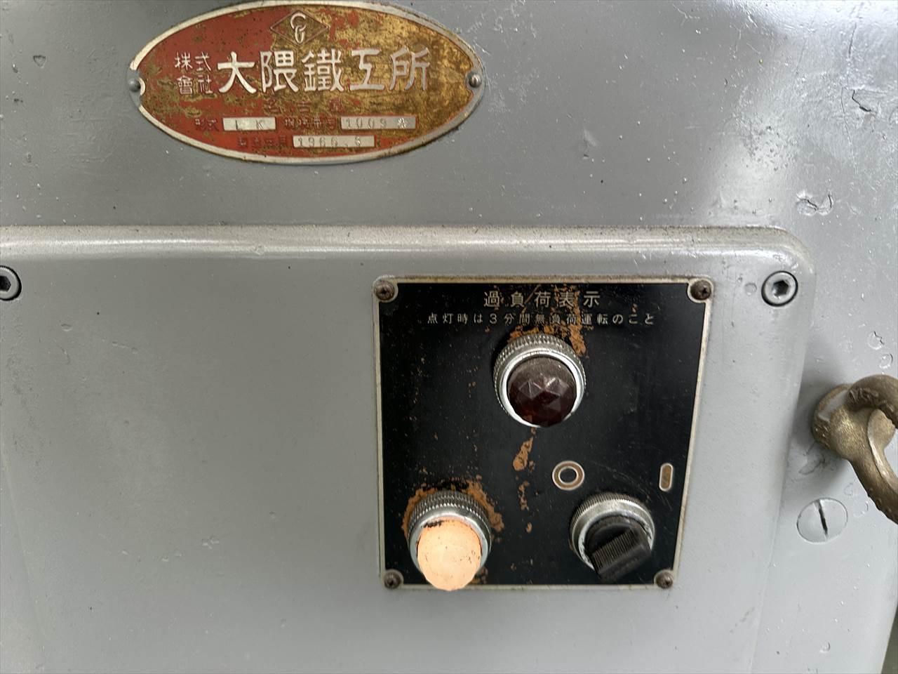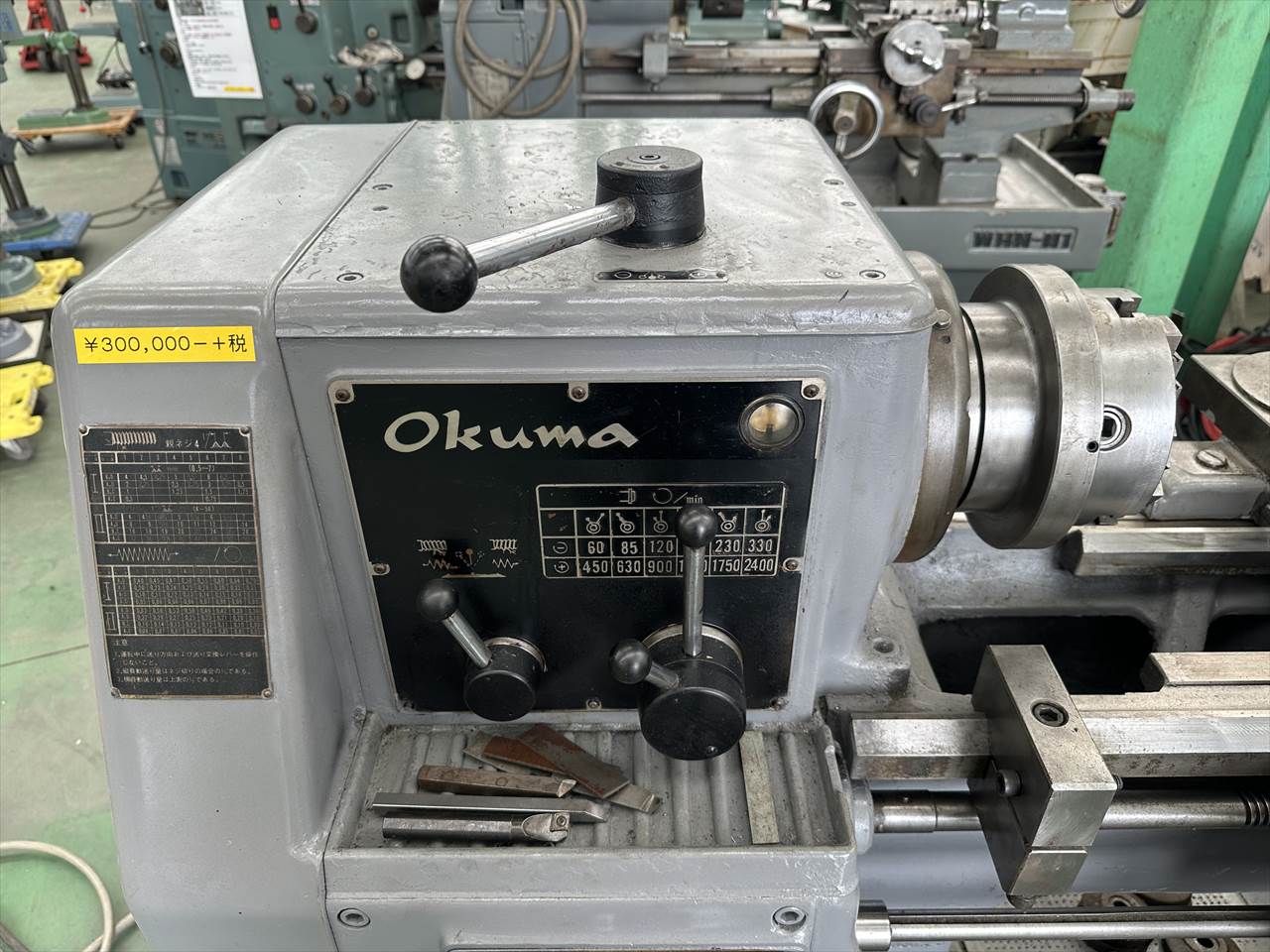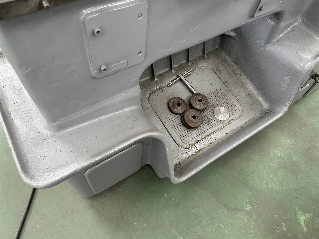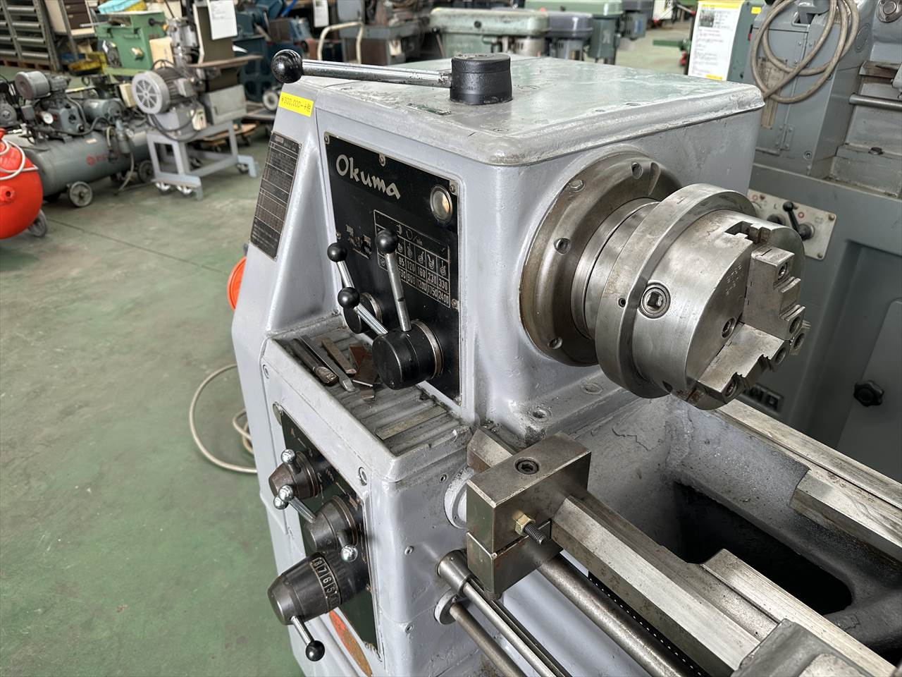 ○特徴  足踏みブレーキは有りません。  小型機ながら主軸回転数は60~2400rpm(12段)です。 ○容量  ベッド上の振り:φ350mm  横送り台上の振り:φ190mm  横送り台最大移動距離:200mm  上部刃物台最大移動距離:100mm  両センター間の最大距離:582mm ○主軸  φ160mm3爪スクロールチャック(φ190に交換できます。)  主軸回転数:60~2400rpm(12段)  主軸穴径:φ39mm  主軸穴のテーパ:M.T.№5 ○送り歯車箱  自動送りの範囲:0.05~0.7mm/rev(32段)  ネジ切りの範囲:ピッチ0.5~7mm ○心押し台  心押し軸の最大蔚号距離:120mm  センターのテーパ:M.T.№3 ○ベッド  長さ1415×幅300mm ○モータ  3.7kw ○機械の大きさ  幅1700×奥行930mm 重量1220㎏