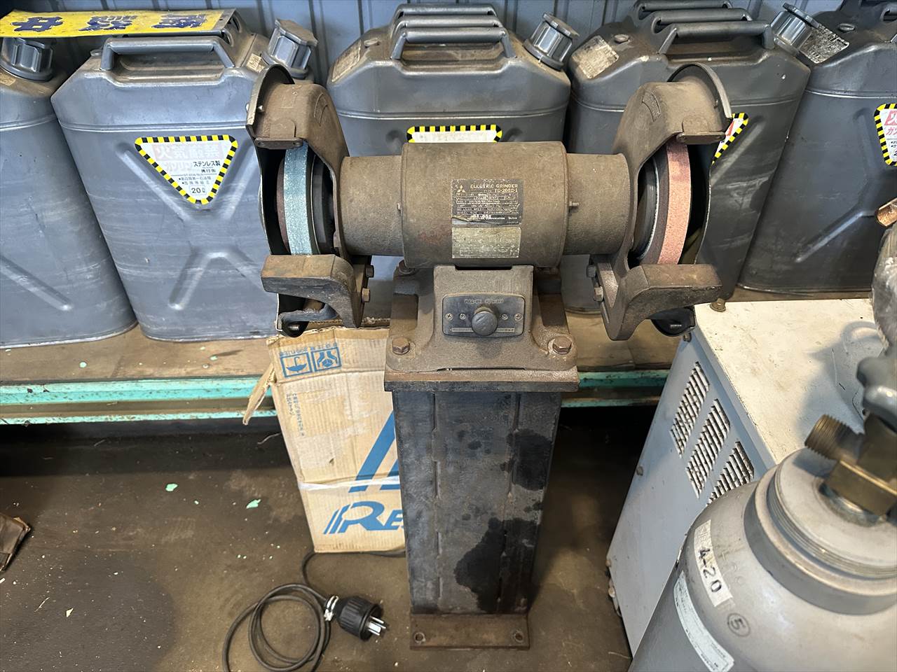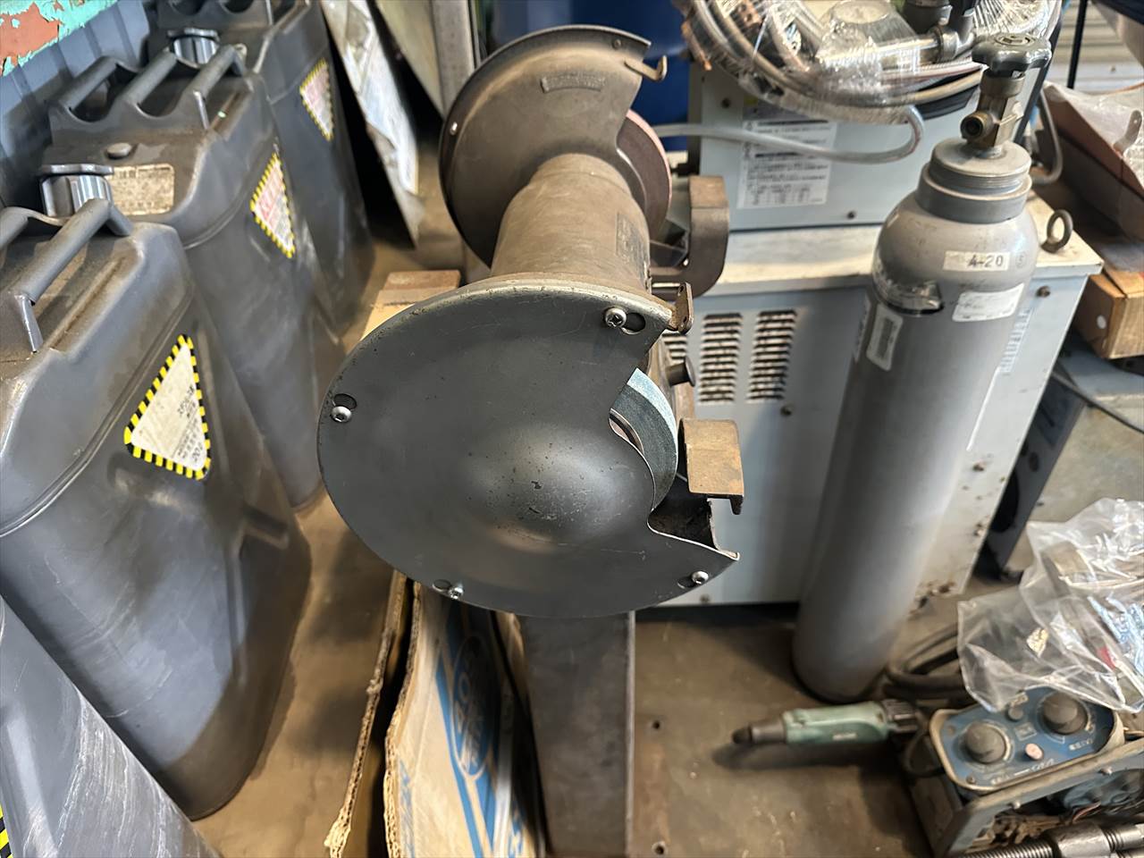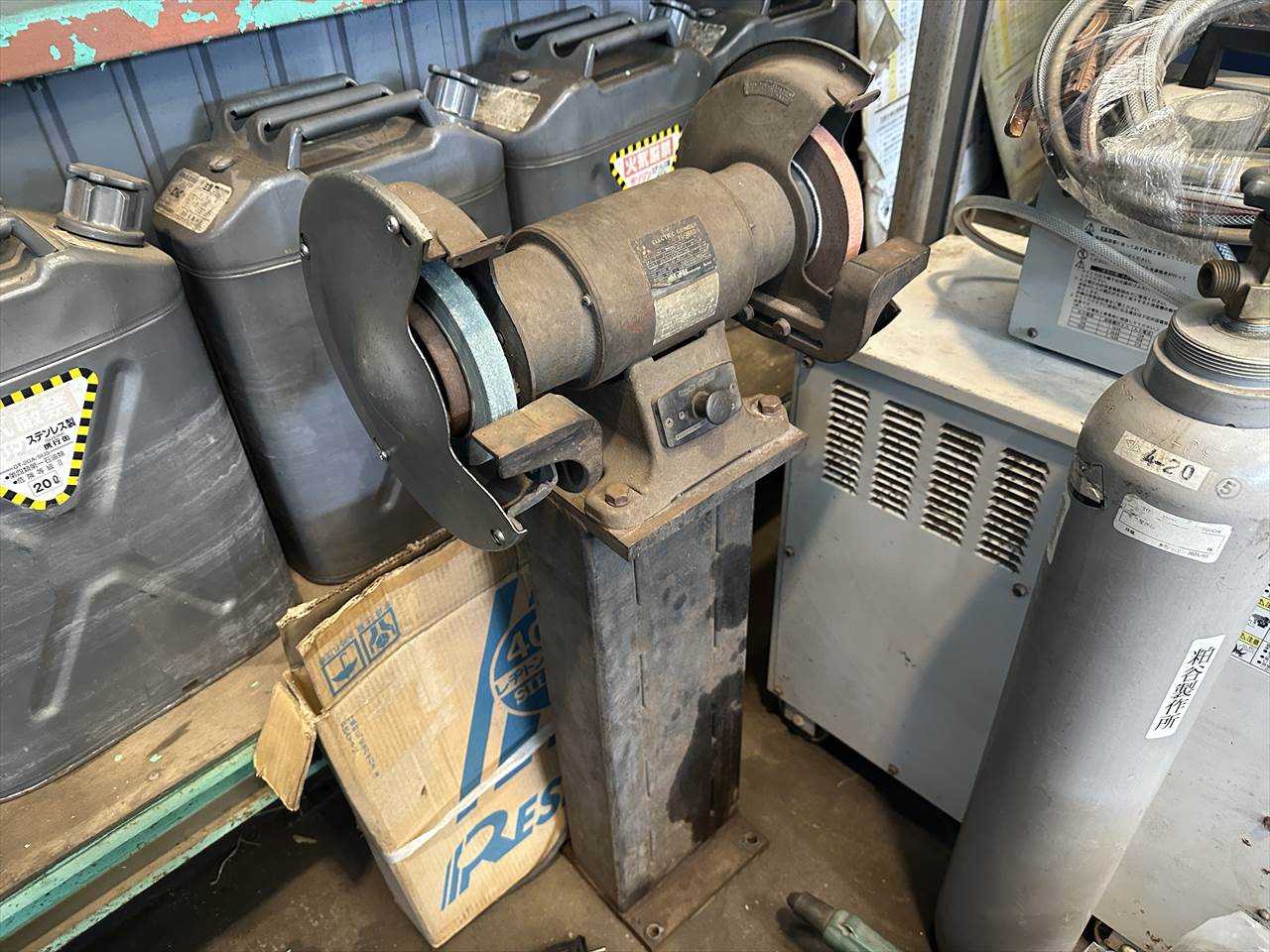 ○モータ  400W 3相200V ○砥石寸法  外径φ205×幅19×内径φ15.88mm  (周速2320m/min) ○機械の大きさ  幅430×奥行250×高さ270(+台640)mm ○高さ640mmの台付
