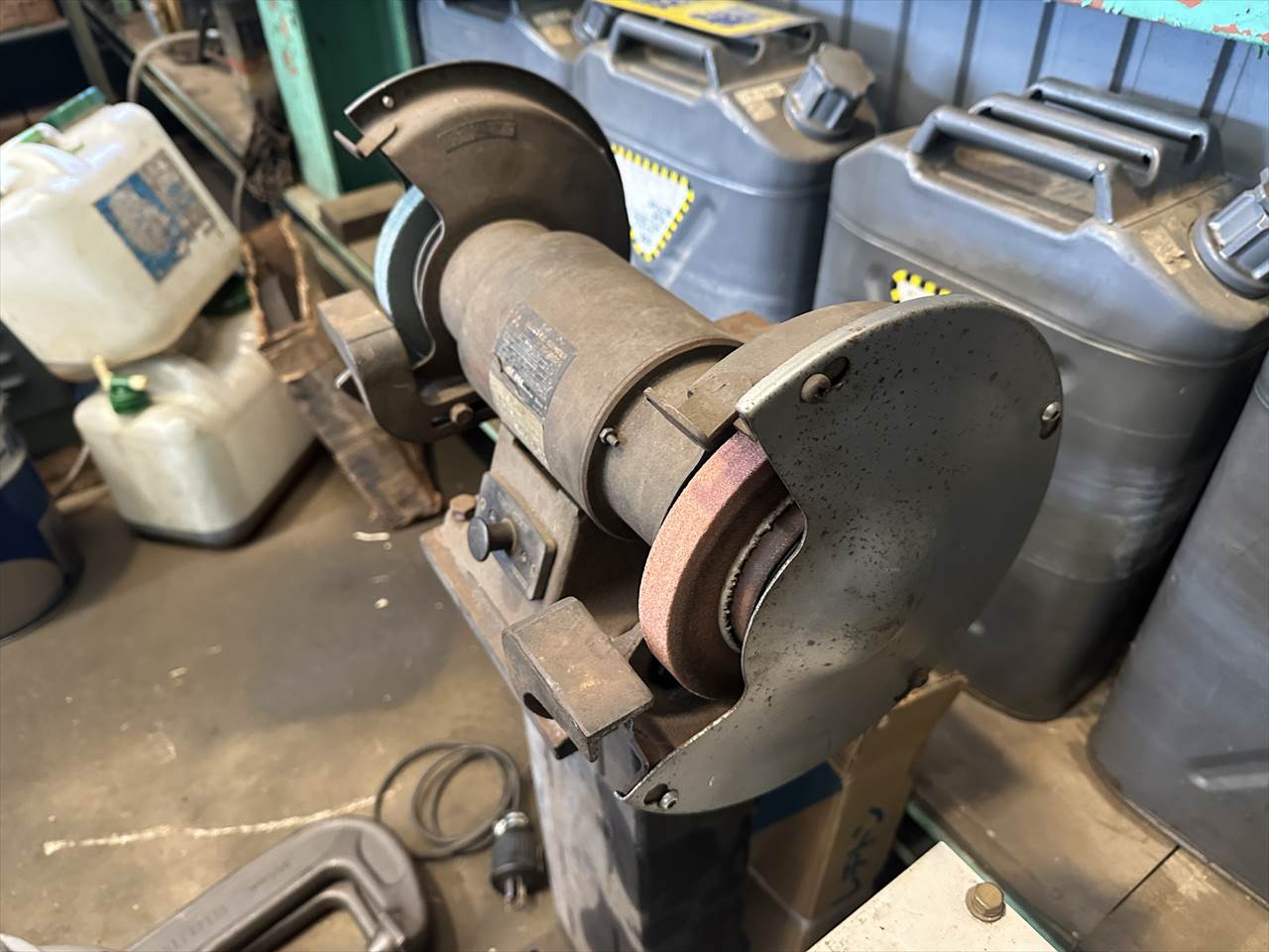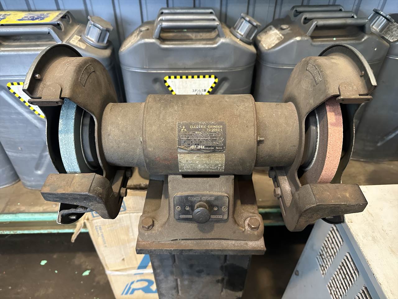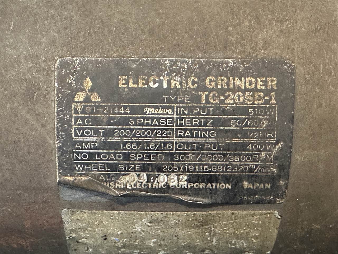 ○モータ  400W 3相200V ○砥石寸法  外径φ205×幅19×内径φ15.88mm  (周速2320m/min) ○機械の大きさ  幅430×奥行250×高さ270(+台640)mm ○高さ640mmの台付