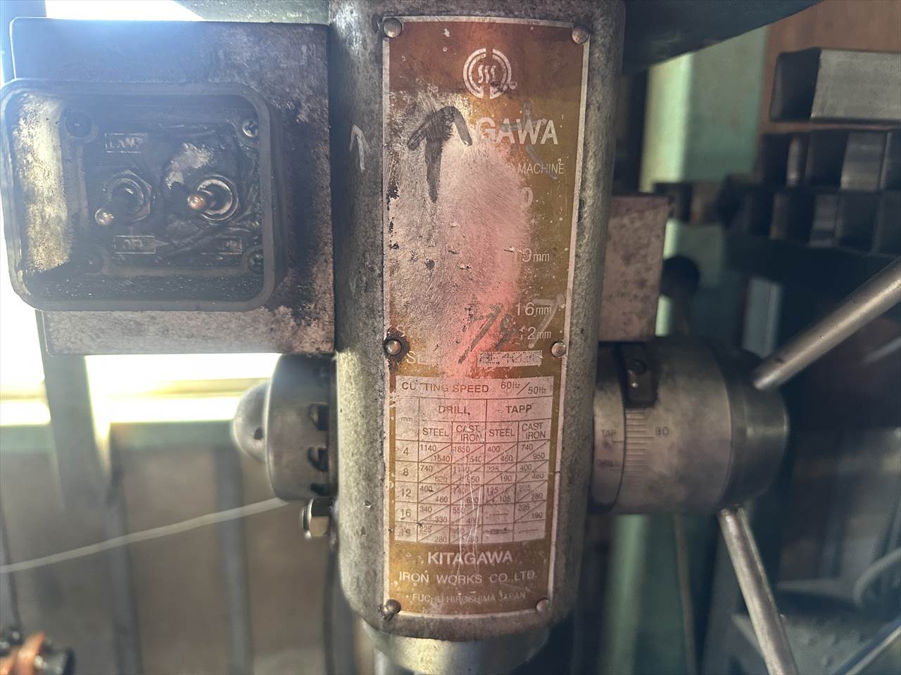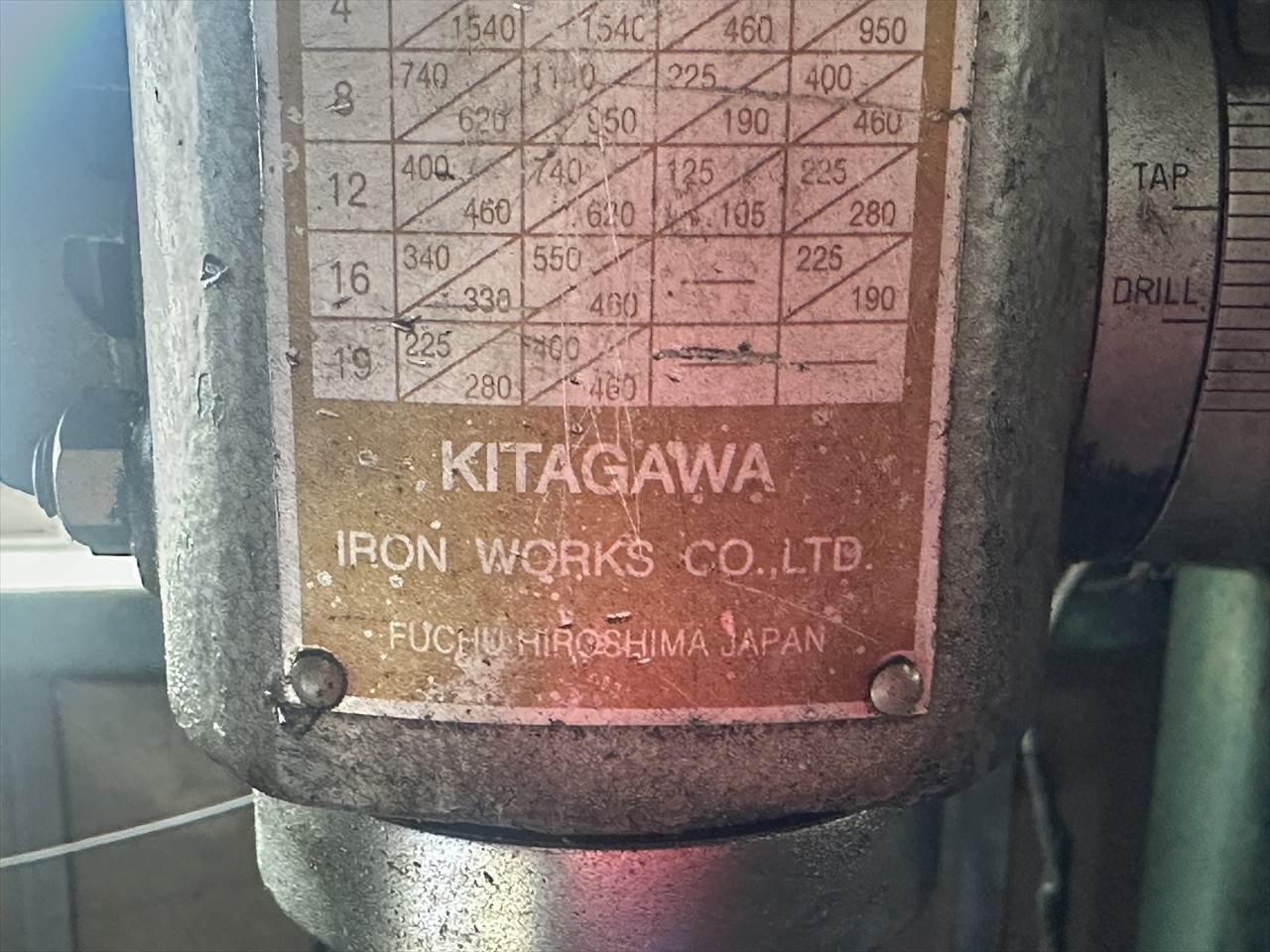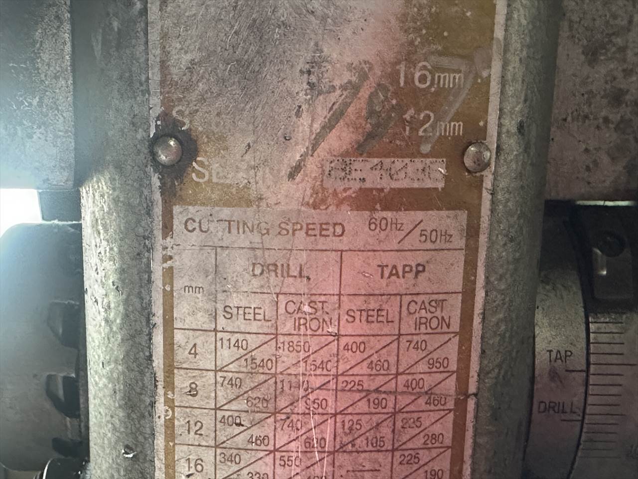 ドリル:φ19mm タップ:鋳鉄M16 鋼M12mm